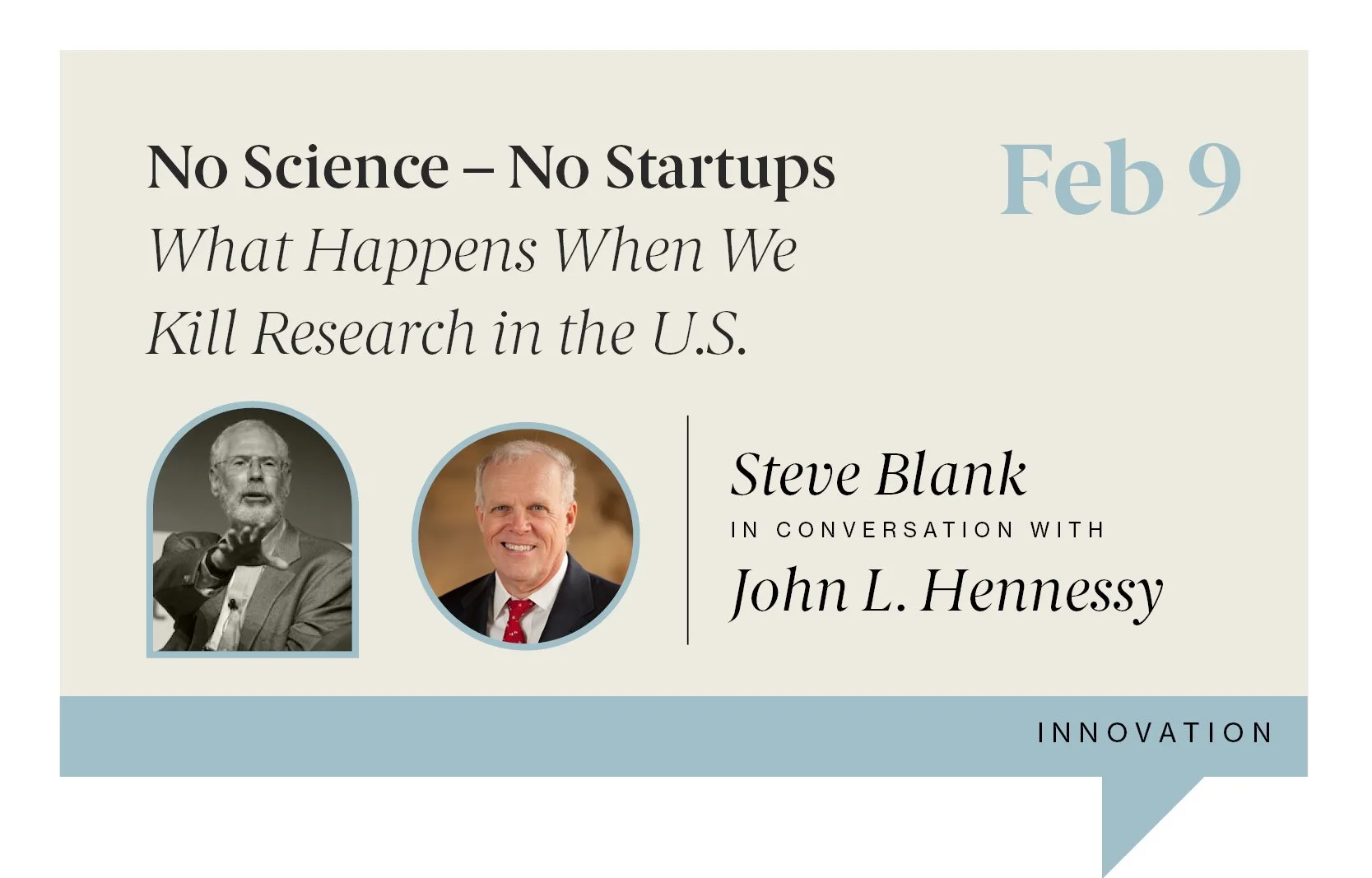 For three quarters of a century, American innovation has been powered not only by entrepreneurs and startups, but by deep investments in science, research universities, and long-term leadership. These foundations shaped Silicon Valley, fueled economic growth, and positioned the United States as a global innovation leader. In this Village Talks conversation, Steve Blank and John Hennessy explore how that system came to be — and why it is now being dismantled and its consequences. Drawing on Steve’s work on innovation and entrepreneurship, and John’s leadership at the intersection of academia, public policy, and technology.